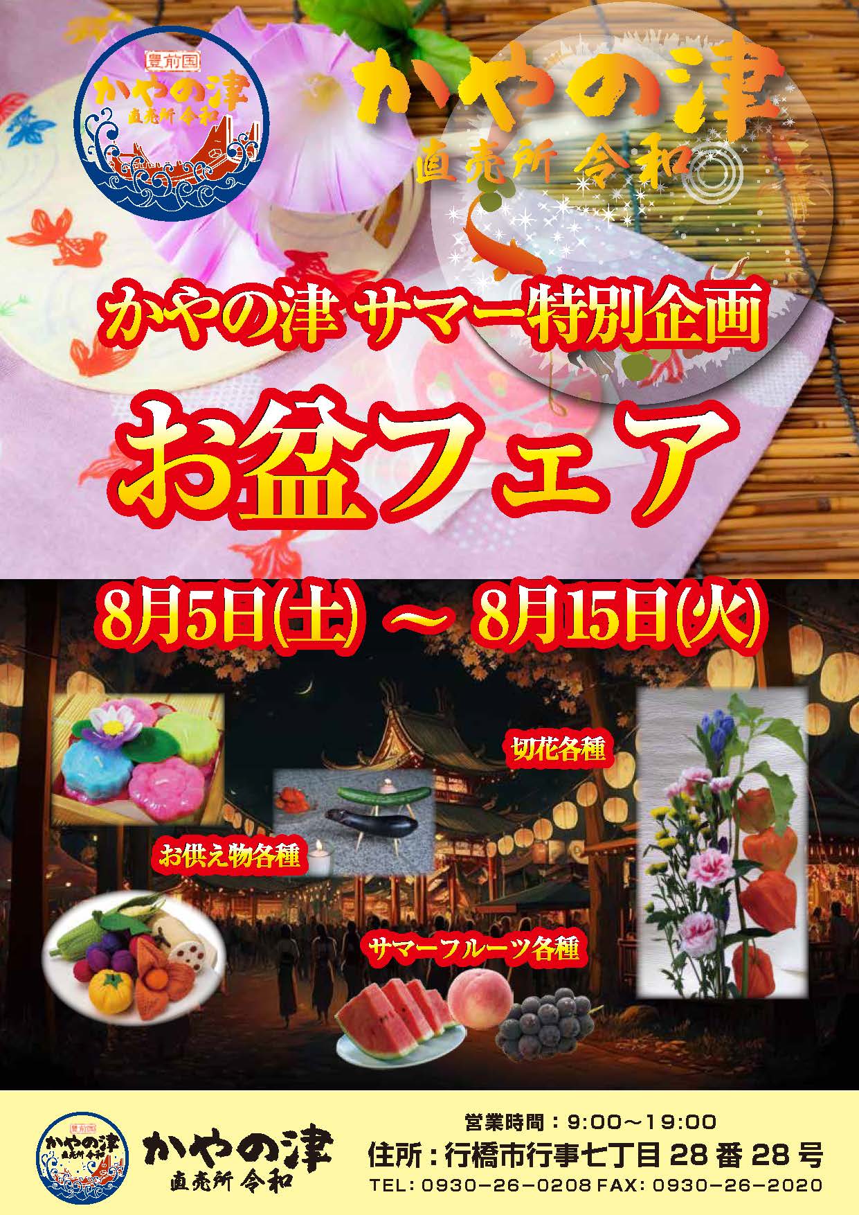 お盆はお家でプラン★「お盆はおうちで美味しく」~かやの津直売所令和